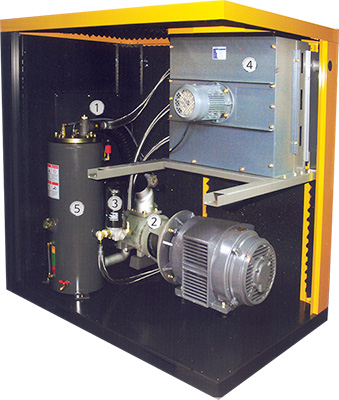 흡입 필터외부의 차가운 공기를 Air End로 직접 흡입토록 하여 압축 효율을 증가, 외부에서 흡입 필터를 쉽게 탈부착 및 청소 가능